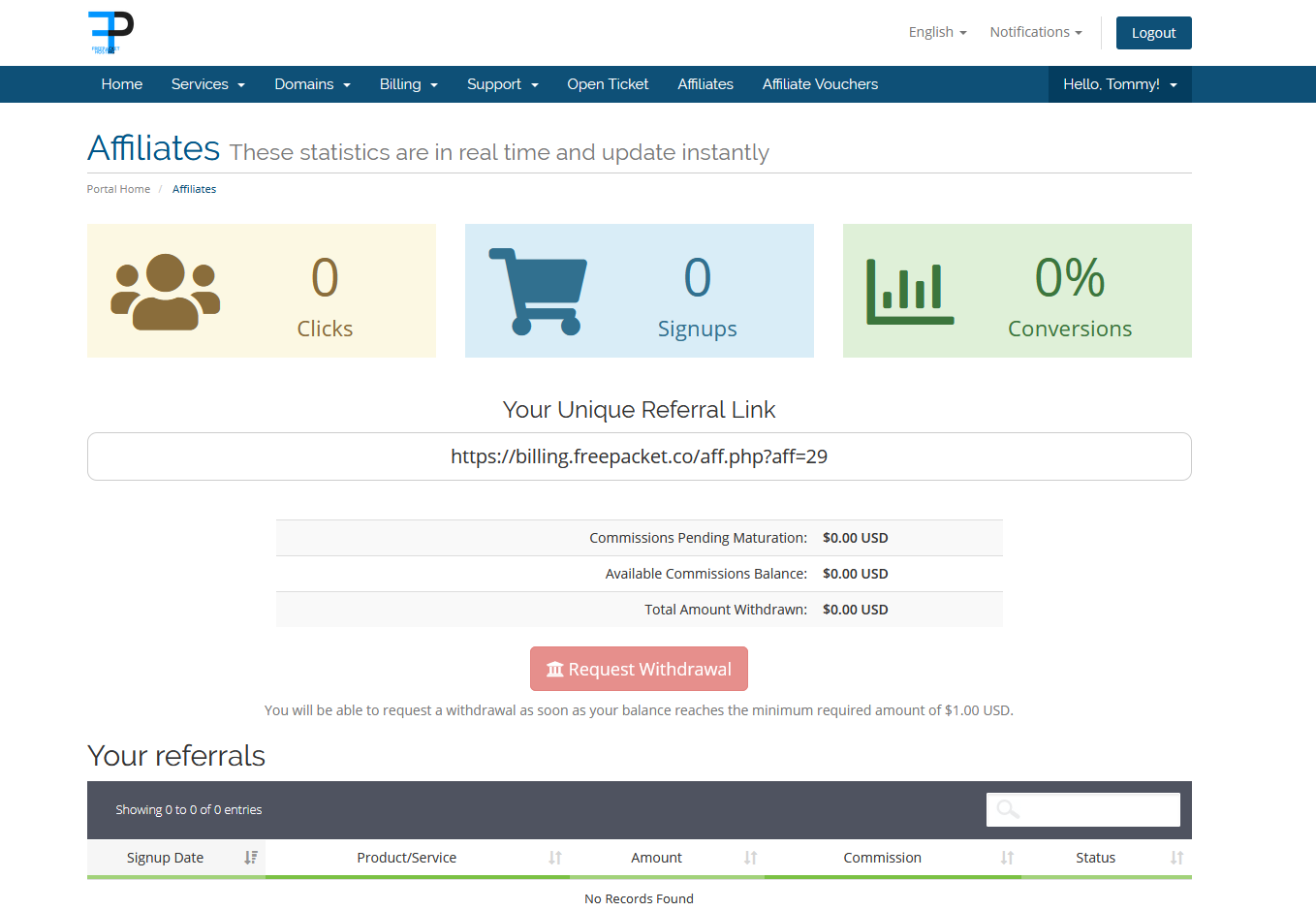 Your Affiliates page should look like this now.